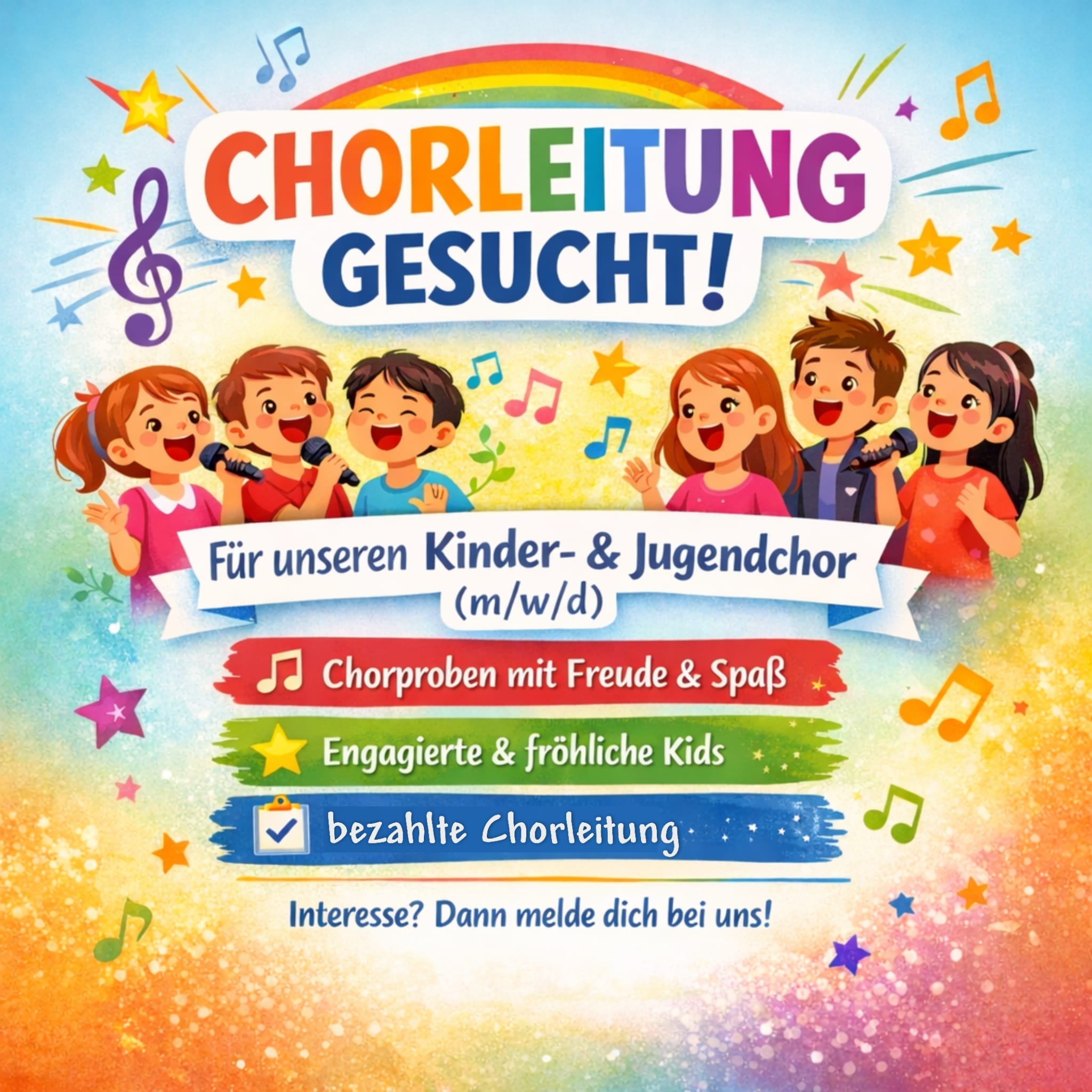 Zunächst brauchen wir Unterstützung bei der Leitung unseres Kinderchores.